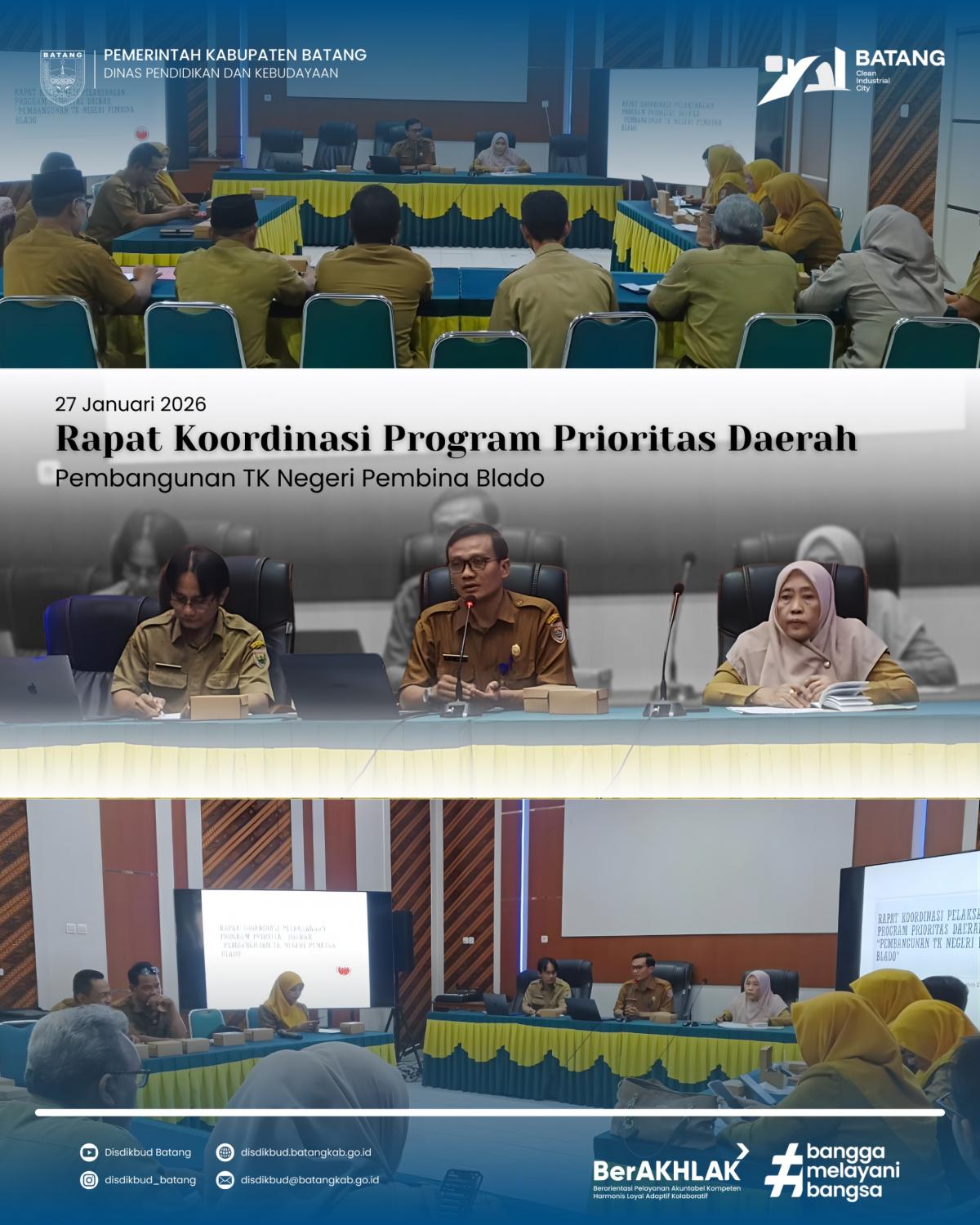 Batang Pemerintah Kabupaten Batang terus menunjukkan komitmennya dalam menghadirkan layanan pendidikan yang merata dan berkualitas bagi masyarakat. Salah satu upaya yang dilakukan adalah melalui Rapat Koordinasi Lintas Perangkat Daerah bersama pemangku wilayah dalam rangka membahas perencanaan pembangunan TK Negeri Pembina di Kecamatan Blado.